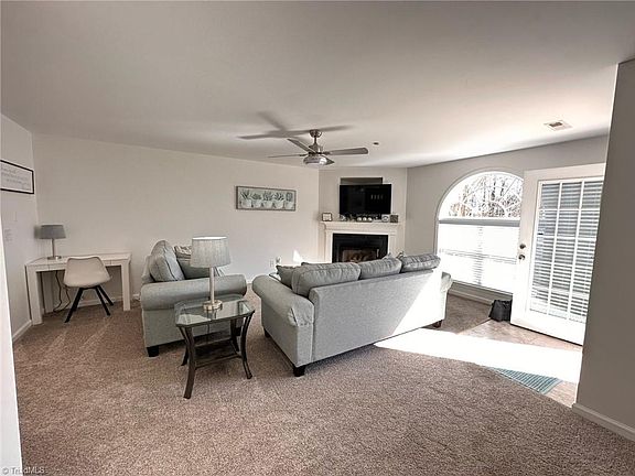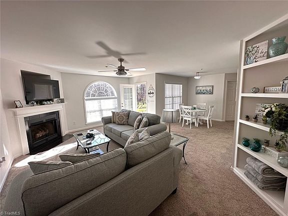 Multiple offers. Please submit Highest and best by noon March 9th. Act quickly to possess this pristine 2 Bedroom 2 Bath First Floor end-unit with private back entrance. Combine comfort with great living with features such as Great Room with fireplace and lots of windows. There are no washday blues here, thanks to the laundry room. Cook legendary meals in this modern kitchen with pantry, newer kitchen appliances included. Also consider: Welcoming entry atrium, airy and bright floorplan, newer flooring, freshly-painted interior, private master suite features spacey walk-in closet, smooth painted ceilings, covered back patio overlooking the pond and outside storage room. Several updates over the past few years including new toilets, faucets, shower head, door hinges and doorknobs updated, new light fixtures, smooth ceilings, digital thermostat and ring doorbell installed. Close to High Point University, Downtown High Point, Shopping, and grocery stores. Don't wait! It won't last long.