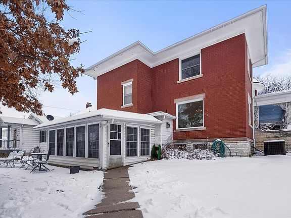 Here is a well maintained home with plenty of character. It's a double walled brick construction two story with a walkup attic. Perfect for extra storage or an open canvas for additional finished square footage. Floors have been re-finished and the main floor features a cozy sitting area by the gas fireplace. Also is a family room, formal dining, kitchen and a half bath. Off the kitchen is a three season room and concrete patio. A two stall garage is located off the alley. Upstairs are four bedrooms, washer, dryer and a full bath that was renovated in 2018. Many of the windows have been replaced over the years and the roof was done in 2006. There's a forced air gas furnace and central air conditioning. Home is equipped with a back flow valve and received no loses in the basement during the 2007 flood.