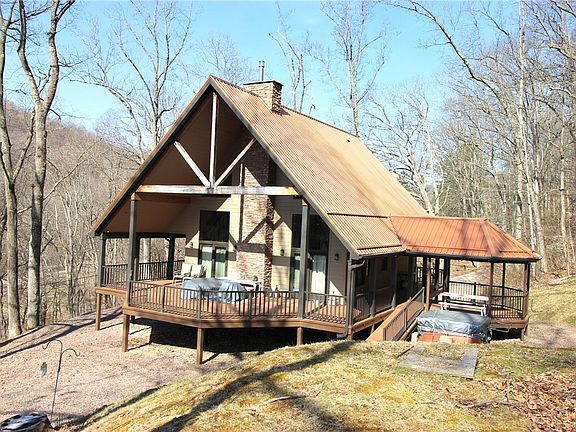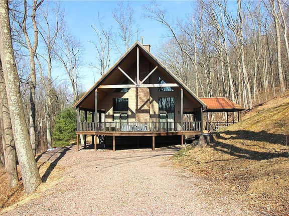A secluded 6-acre paradise is a year-round vacation home located in the heart of the Laurel Highlands. Family & friends can enjoy boating, biking, hiking, kayaking, paddle boarding, fishing, hunting, golf, skiing all less than 30 minutes away! A pathway leads down to the Yough Lake’s Tub Run Cove to enjoy a day of the water. An architecturally designed, custom-built 3-bedroom house (sleeps 10), 3 full baths & an open-concept great room boasting a 26-foot-high tongue-and-groove cathedral ceiling. Handmade walnut mantle complements the 9 ft wide propane log fireplace anchored by a Virginia stone chimney. Enjoy 986 sqft of Trex deck with aluminum railing wrapping both sides & front of the house with 95% covered yet open space to sunbathe. Low maintenance exterior features a metal roof with ice & leaf guarded heated gutters, & LP Smart Siding™. It would be an ideal destination for multi-family groups or a group of friends...or just for YOU and your loved ones. 10'x12' Shed too.