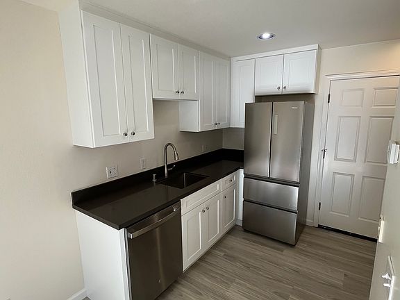 2 Bedrooms; 2 Full Baths, 2 Levels, And 2 Car Garage in house like duplex in great area of San Mateo (Beresford). Cathedral Ceiling in Living room w/ Wood Burning Fireplace, Dining Area. New Plank Flooring in Living Room/Dining Room. Remodeled Kitchen With Brand New Stainless Steel Appliances, Great Sunlight. Both bedrooms have balconies off of them w/ sliding glass doors. One bedroom has large walk in closet , One remodeled bathroom upstairs and one downstairs, 2 Car garage w/ washer/dryer hook ups. Two cars can park in the driveway when guest come over. Small enclosed outdoor patio area off of dining room and living room. Interior just painted. Great neighborhood. Easy access to Hwy. 101/92/280. Don't Miss! Owner pays for gardener. Tenant pays all other utilities. 1 year lease. No Pets. No smoking.