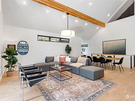 Beautifully architected, this home radiates grandeur yet still maintains a feeling of intimacy. Custom built in 2018, this open concept modern design features a stunning vaulted ceiling, east facing wall of windows and refined finishes throughout. Glass sliders open to expansive ipe deck with lake & mountain views. Entertain effortlessly in your chef’s kitchen complete with high end appliance suite. Lower level has partial kitchenette, media room & bedroom ideal for guests or multi generational living. Climbing wall in upper loft! Private yard has raised beds, native plantings - a true gardener’s delight! All new systems & AC. Alley access with 2 parking spaces. Close to Downtown, Eastside, Leschi neighborhood shops & Lake WA. A must see!