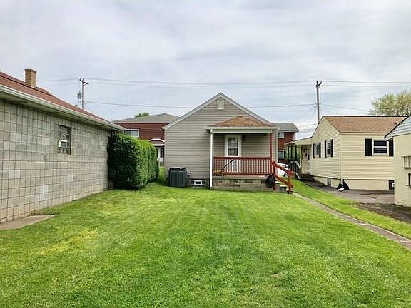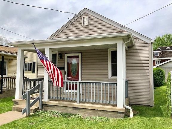 Adorable ranch style home in excellent condition. Front covered porch and back covered porch. Incredible flat large yard. Bedrooms have center light, windows, closet, and carpet. Full bath has shower, white vanity, white medicine cabinet and neutral vinyl flooring. Home has blown in insulation. Kitchen has a ceiling fan with light, vinyl flooring, gas stove, refrigerator and microwave oven. There is window above the sink. Trane furnace, central air, newer 40 gallon water tank, loads of storage in basement, washer and gas dryer, 2 glass block windows with vent, 100 AMP circuit breaker box.