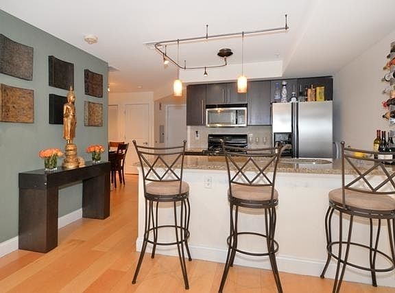 Beautiful 1 bedroom 1.5 baths is located in Guttenberg and features: Stainless steel appliances, granite counter tops, dishwasher, in unit washer/dryer and track lighting. Pets up to 30lbs. Parking included. Minutes from the liberty skyline. Perfect apartment for a commuter with a 25 minute bus ride into NYC port authority located in midtown and bus stop around the corner.