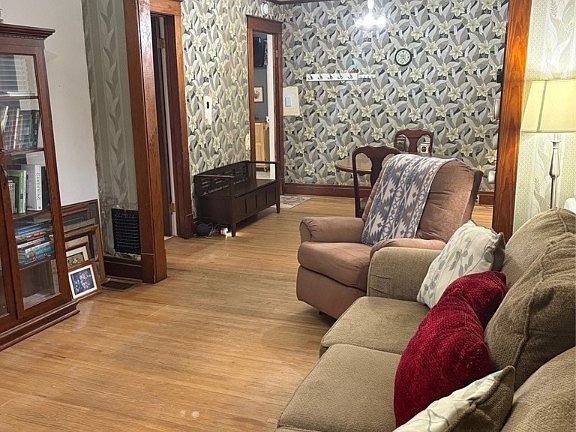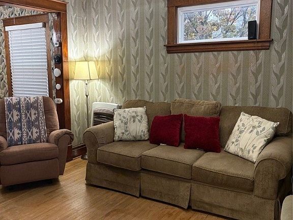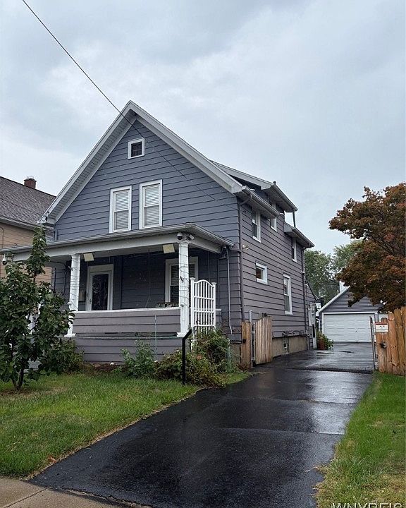 What a great front porch to relax on. This is a total "Smart" home- from the security system and lighting, to air quality monitoring and everything in between- This home has it all. There are 3 bedrooms with hard wood floors plus a full bath upstairs (Needs renovating).windows . The 1st floor has the second full bath featuring a heated floor, jetted tub, and separate Low step-in shower. The Large Living room and Formal Dining room has High ceilings and hardwood floors along with replacement and is adjacent to the big eat-in Kitchen. Stainless appliances are also included- Side by side refrigerator, Dishwasher, and Gas Convection Oven. The Wall mount televisions will also be included. Relax knowing there is a Whole House Generator to keep the lights on during possible storms. The detached garage is also monitored inside and out and has extra room with the back bump out for great storage as well as storage. The automatic driveway gate also adds to your security.