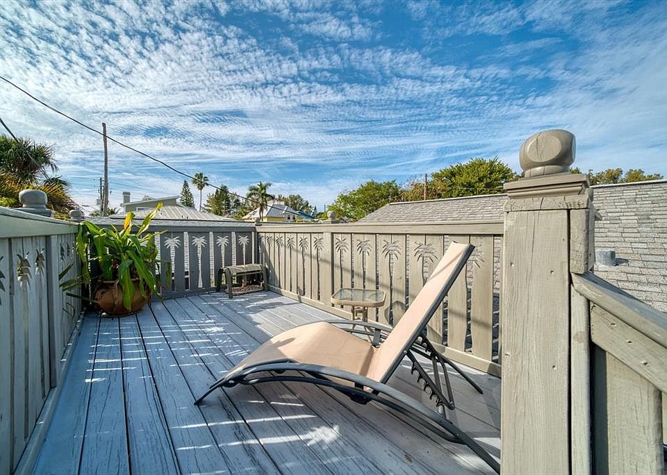 THREE Bedroom Two Bathroom tastefully furnished Sunset Beach Cottage just steps to the sand. Beautifully renovated cottage preserves the nostalgia of the past and offers a modern floor plan & amenities. The main living area features a well-designed open floor plan with the Master Suite on the East and two bedrooms to the west. Spacious living room opens to the eat-in kitchen with island. Enjoy a spacious master bedroom suite, rare in cottage living. Watch the world go by from your front porch or Retreat to your private backyard with partially covered & partially open deck which spans the width of the house. Have your morning coffee on the roof top Sundeck while you capture the winter sun. Photographs illustrate the beautiful finishes. Additional features include ceramic tile and wood floors & ceiling, crown molding and decorative trim, lush landscaping, an oversized driveway & detached utility shed. This cottage has one of the most comfortable floor plans on Sunset Beach. Home to be sold Turnkey Furnished. Located on eclectic Sunset Beach where Livin’ on Island Time is more than just a motto, it’s a lifestyle. Walking distance to local eateries & watering holes. Convenient to downtown St. Pete, Ft. De Soto & Tampa Airport. If you are ready for a change in latitude schedule a tour or a virtual showing today. Virtual tour includes aerials, floor plans, room measurements, photos & more.