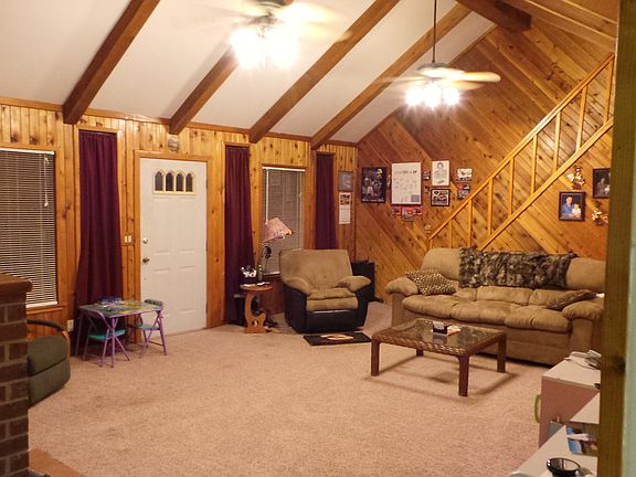 Beautiful 3 bedroom 2.5 bath home setting on 12 mostly cleared acres. Land is fenced on 3 sides with 3 stocked ponds and a 30x50 shop building with concrete floors , insulation and electricity. New shingle roof , carpet , gas logs , a/c unit and water filter installed less than 5 years ago. Shop is less than 5 years old also. House has vaulted ceiling in living room with additional upstairs room that could be used as an office or extra bed room. Master bedroom has bathroom with large jacuzzi tub. Large walk in closets in every room with lots of cabinet space in kitchen and a large pantry area. Attached 2 car garage with 1 automatic garage door with water and sink in garage. Wrap around porch with large shade trees around house. Gazebo next to one pond