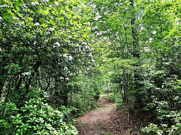 Absolute privacy, tucked in a forest of blooming mountain ivy bushes! This land building site is gorgeous!! Consisting of 3 consectutive lots with a private well, 2 bedroom septic permit, underground power, driveway, and house pad already in place. The land lays gentle on the top with room for garages, yard, or garden beds, and knolls down to a small creek at the bottom. Beautiful natural foliage, in addition to planted, mature blueberry trees. Ready to start building your mountain dream home? THIS IS THE SPOT!!!