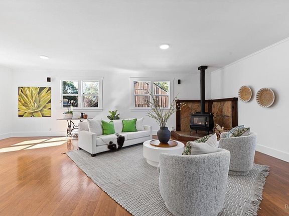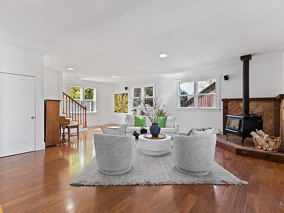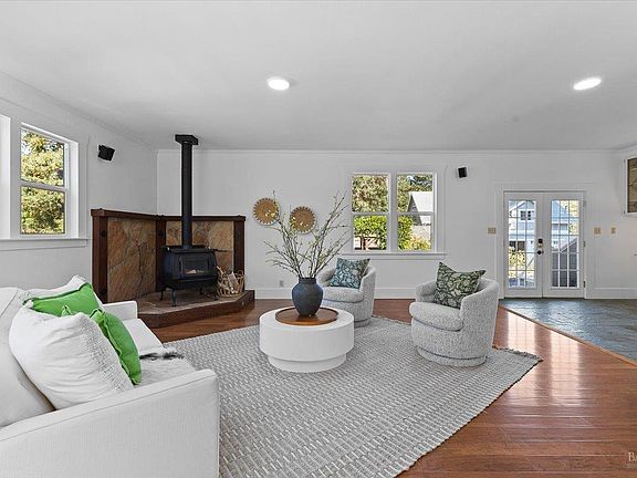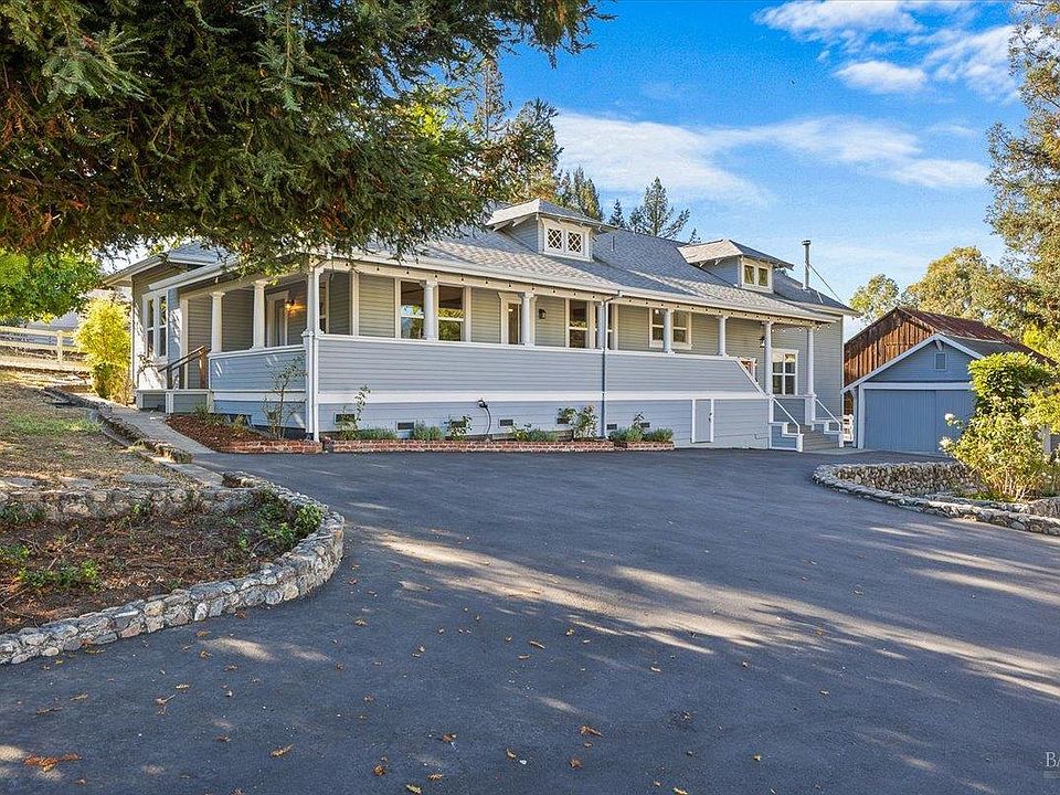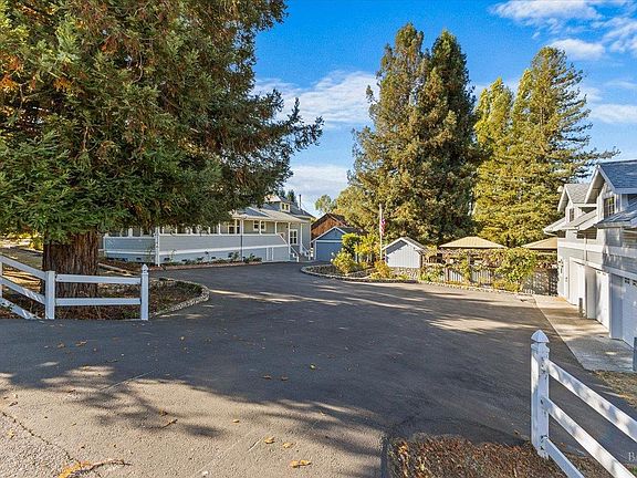 Perfect property to pair the magic of country living with modern conveniences. Municipal services mean you don't have to fuss with septic, wells, propane tanks, or repairing private roads. Just pull in to your 5+ car driveway and relax on the Trex deck or covered porch. With 2 dwellings, you can live in one and rent the other or have space for visiting friends and family. Main House: Most of the house is on the main floor w/wraparound porch. The spacious primary suite addition is upstairs. 4 bedrooms, 3.5 bathrooms total, with inside laundry room, living room, family room and formal dining room, kitchen, scullery. ADU: In a separate building you'll find an upstairs dwelling with an open layout, full kitchen including gas stove, bedroom, full bathroom, side x side laundry, and additional storage. This also comes with a garage space and it's own PGE meter. Garages/Outbuildings: Detached 2 car garage between the dwellings has a stove, 2 refrigerators, 220 for EV charging, counters and served as an entertaining space off the deck. In the ADU building there are 2 extra deep garage bays, with storage cabinets. A lower detached 2 car garage is suitable for storage. 2 Magestic redwood trees, apple, plum and olive trees, Concord grape, + raised garden.