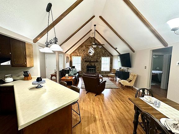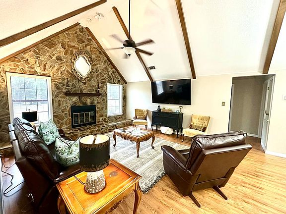 WEST LEE COUNTY HOME ~ UNIQUE HOME WITH CHARM GALORE ~ PLUSH LANDSCAPING ~This is a beautiful 4 bedroom/ 2 bathroom home that is IMMACULATE and ready to move in! OPEN & AIRY FLOORPLAN! Mountain cabin feel in South Georgia complete with laminate hardwood floors, soaring high vaulted ceilings with exposed wood beams and stone fireplace that extends to the ceiling! Open Floor Plan kitchen complete with lots of counter and cabinet space, window over the sink, breakfast bar, pantry and open to the dining room and great room! The dining area is an extension of the great room and has high ceilings and new sliding doors that lead out to a 240 sq foot SUNROOM a perfect outdoor living area for watching fall football games or a nice office area! The pretty primary suite includes a walk in closet and private bathroom! The two additional bedrooms are spacious and have ample closet space! The fourth bedroom is currently the office/laundry room but could easily be changed back into a 4th bedroom! A beautiful sunroom that has views of the backyard! Outside boasts a double garage, open patio perfect for grilling, plush landscaping that will have your yard in bloom all year around and wonderful neighborhood that is close to everything!