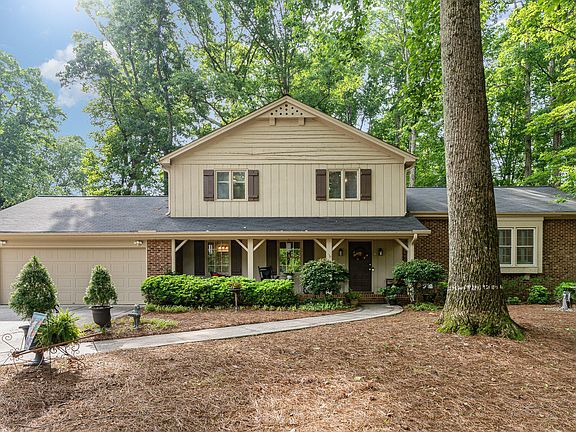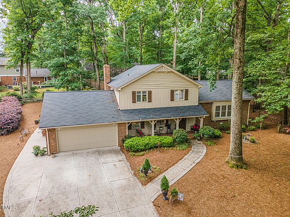 Welcome to your dream home in the heart of Cary! Nestled on a spacious half-acre lot and surrounded by mature hardwood trees, this stunning split-level residence blends timeless charm with modern comfort. The classic brick and wood exterior, along with a welcoming covered front porch, sets the stage for warmth and hospitality from the moment you arrive. Step inside to discover a brand-new first-floor primary suite—a true retreat featuring a bay window, walk-in closet, and a spa-like bath with a soaking tub, walk-in shower, and double vanity. A second first-floor bedroom with its own half bath makes an ideal guest suite or private home office. The updated kitchen boasts stainless steel appliances and flows effortlessly into a bright dining area—perfect for hosting family dinners or casual gatherings. Downstairs, the expansive family room with a cozy gas fireplace invites relaxation, while the oversized sunroom and enclosed porch bathe the space in natural light year-round. Upstairs, you'll find three more bedrooms and two full baths—ideal for growing families, guests, or multigenerational living. The oversized garage includes built-in cabinetry and a separate storage room for all your tools and toys. Step outside and enjoy a backyard built for fun and function: a private patio for entertaining, artificial turf play area for pets and kids, and your very own 29x22 basketball court. Located in one of Cary's original and most sought-after neighborhoods, just minutes from the Beltline and a short stroll to McGregor Downs, this home offers unmatched convenience, space, and character. Don't miss your chance to own this one-of-a-kind property—schedule your tour today! Washer/Dryer/Refrigerator convey. Roof 2016. Association fee is not mandatory.