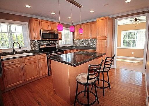 - Kit Dscrp: Main Level, Dining Area, Flooring - Hardwood, Kitchen Island, Stainless Steel Appliances, Open Floor Plan, Recessed Lighting, Countertops - Upgraded, Remodeled, Crown Molding