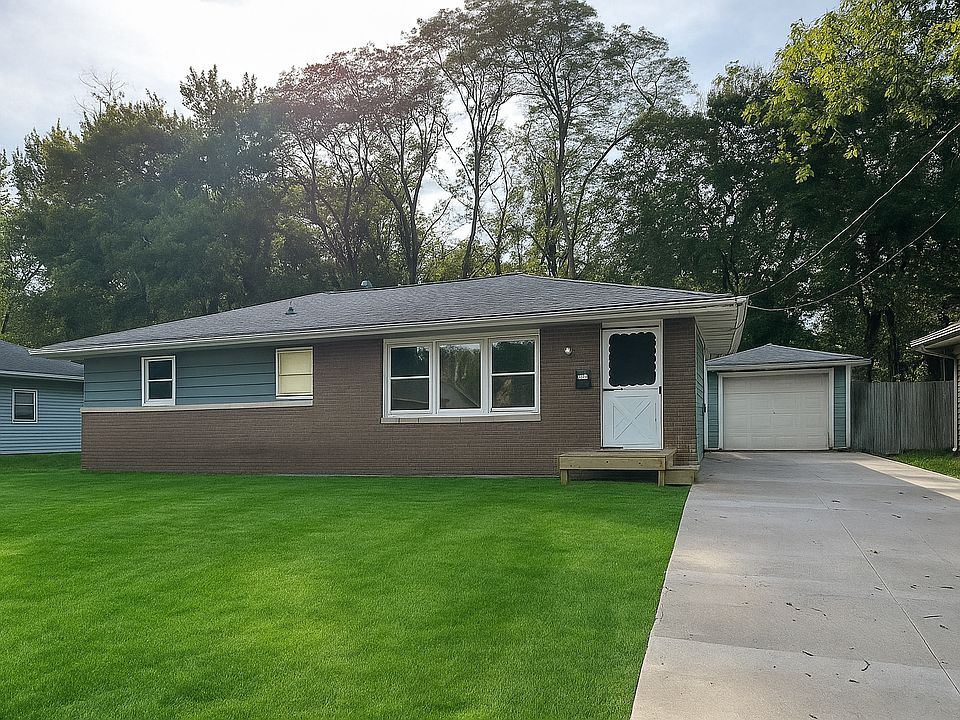 3 bedroom, 1 bath, 1000 sq foot brick front ranch with a 1 stall detached garage. Located in very desirable neighborhood. It has loads of updates, with a new driveway and back patio. It has all new flooring and all remodeled rooms. It has a full unfinished basement in great condition with laundry hook-ups and lots of storage.