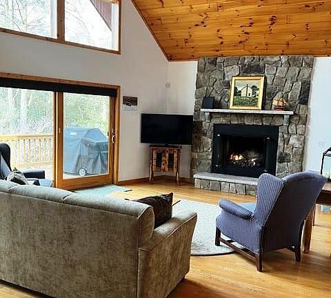Beautiful lakefront home with 3 bedrooms and 3 baths in the privatecommunity of Panther Lake. Home has many recent upgrades including granitecountertops, stone fireplace converted to house propane, 20' x 5' permanentfloating dock with stone paths leading to lake. The entire home's exterior has been recently stripped, sealed, and stained. The main living area features hardwood floors, a bedroom and full bath. The primary bedroom with ensuitebath, shower and whirlpool tub is on the upper level. Lower level has a bedroom,full bath, entertainment area with wet bar and beverage cooler. The home ismostly furnished with very nice furniture. Mechanicals include central AC, a high efficiency propane forced hot air furnace and a whole house sedimentand charcoal water filtration, Beds Description: 1 BED 2nd, Beds Description: 1BedLL, Beds Description: 1Bed1st, Beds Description: 1 BED 2nd, Baths: 1 Bath Level 1, Baths: 1 Bath Level 2, Baths: 1 Bath Level L, Eating Area: Dining Area, Eating Area: Modern KT