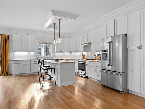 This 2020 construction townhouse offers over 3,100 sqft across 3 levels in a well-maintained 2-unit association—an ideal single-family alternative. The entry foyer features ample storage and built-ins, leading to a garage and a bonus room with en-suite bath, perfect as a family room or 4th bedroom. The main level includes a spacious living room with built-in shelves and wainscoting, an oversized white shaker kitchen with gas cooking and large island, a separate dining area, and a 1/2 ba and laundry. Sliding doors lead to the rear deck which overlooks the large, private fenced-in yard. The top floor boasts 3 bedrooms, including a king-sized primary with a large walk-in closet and luxurious en-suite bath w/double vanities and walk-in shower. Additional highlights include dual-zone HVAC, hardwood floors, lots of storage, plus a private driveway and 1-car garage with Tesla charger & epoxy floor. Conveniently located near Moody St shops and restaurants, commuter rail, and major highways.