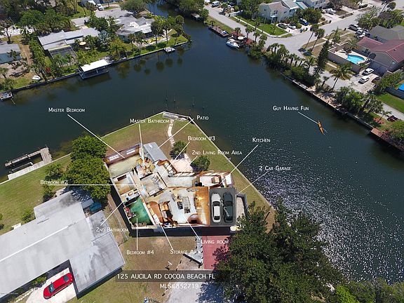 Waterfront paradise in World Famous Cocoa Beach! Close to downtown, schools, and literally blocks from the beach. This concrete block 2700+ sq ft, 4/2/2 home is situated on an oversized corner lot in a quiet cul-de-sac. Entertainment is a breeze with this large family home. The waterfront views abound from most every room. Enjoy the wood burning fireplaces inside or relax outside and take in the views from your large screened patio. This is the home you have been looking for, come and see today!
