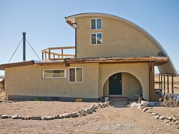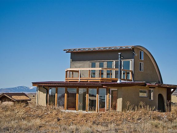 Bright and efficient 1792sf custom home in an incredible natural setting with stunning mountain/valley views! Located on over 3 acres in the Baca Grande subdivision at the base of the 14,000' Sangre de Cristo Mtns. Walking, hiking, riding, hot springs - local activities abound. Enter via covered porch through mudroom, then into bright main-level Living Room, featuring floor-to-ceiling windows, built-in seating and wood stove. Off Living Room is a Full Bath with custom-tiled floor and vanity, and custom combo Moroccan-style shower/soaker tub. Walkways with large windows lead to Kitchen, featuring propane range/oven and custom cabinets and counters, and a separate entrance. Off Kitchen is Laundry/Utility/Storage room with another separate entrance. Hot water supplied by Rinnai propane on-demand heater. Upstairs is bright and spacious Master Bedroom and Half Bath. High, arching ceiling and large south-facing windows provide natural light and a feeling of spaciousness. Sliding-glass doors lead to large deck with panoramic views to the south: Cottonwood Creek, Great Sand Dunes National Park, Mt. Blanca, The San Luis Valley. The South-facing construction is designed for warm passive solar heat in winter. The passive solar heat is complemented by a propane wall heater and the wood stove. Separate Work Shop features greenhouse, additional storage and houses the solar PV system and 12 batteries. Great opportunity to live off-grid - must see!