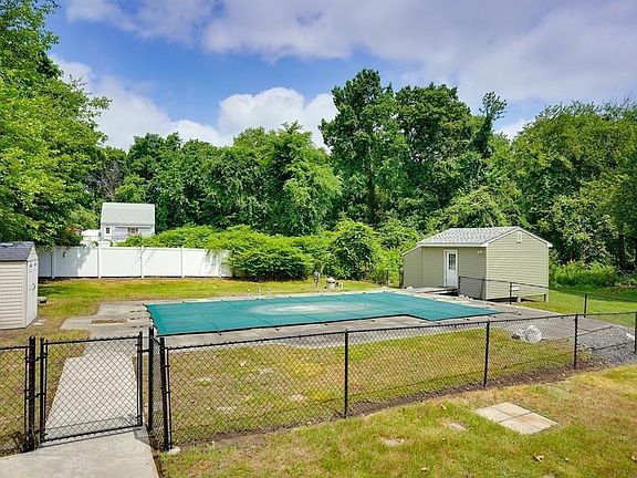 This seven room split level is on a generous 37,474 square foot lot that is flat and fenced and includes an 18' x 36' in-ground salt water pool for summer fun. New roof and new bathroom with skylight and granite counters in 2011, new pool liner in 2013, new furnace and central air in 2014, new siding and front bay window in 2014, new pool cover in 2015. Wood floors under carpets on the upper level. French doors in the dining room. Composite deck off the kitchen. Brinks security system. Two sheds in the back yard included. The fully fenced back yard also includes a fenced area for the in-ground pool. House needs cosmetic work but has tons of potential and plenty of land for expansion. Sold as is.