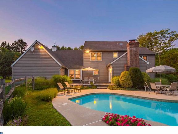 Welcome to this beautiful, well maintained Davenport Farmhouse model in Eagles Mere. This Center Hall Colonial with 1.3 acres borders Core Creek Park. As you walk up the oversized driveway you will notice the new walkway(2016)leading to the newer front door & mature landscaping. Enter the foyer with elegant hardwood oak flooring. The foyer has 2 closets for guests to use when entertaining. This home has a traditional floor plan featuring a turned staircase, formal living room &dining room with hardwood floors. The dining room has chair rail & Crown Molding. All the woodwork throughout the home has been stained to match the hardwood flooring. The kitchen overlooks the beautiful backyard boasting a free-form heated pool with hot tub. The backyard is beautifully landscaped with ample foliage and shade trees. The pool was recently refinished(2014), re-plastered, tiled,& the pool heater was replaced in 2015. In keeping with the natural surroundings, Slate was used to finish the hot tub area. The pool area has hardscaped patios. The kitchen features a center island& a built-in desk, with granite countertops(2009) Newer Refrigerator(2014).The wall oven, cook top,&refrigerator(2014)have recently been replaced. There is a breakfast area seating 6. Keep the back packs in the mud/laundry room off the kitchen with access to the garage &covered porch. The family room gas fireplace is Bucks County Stone& is flooded with natural lighting from the skylights above. An office sits adjacent to the family room. The spacious en-suite master bedroom with dramatic coffered ceiling features hardwood flooring & a huge walk in closet. The Bath which has recently been remodeled (2011) has double sinks, linen closet, large soaking Jacuzzi tub & an oversized stall shower. There are three additional bedrooms with hardwood flooring on this level. Two bedrooms have walk-in closets. The hall bath has a linen closet as well & has recently been updated with granite countertops & stylish fixtures. (2010)The finished basement is ready for crafting & exercising with plenty of room left for storage, workshop & utility areas. All windows have been replaced & upgraded with energy efficient "Renewal by Anderson" windows, valued at over $30,000. These windows feature stainless steel screens to enhance the view of the natural surroundings. The Oil Furnace replaced(2011)hot water heaters replaced(2009). There is nothing left to do but sit back & enjoy the pool and open space!