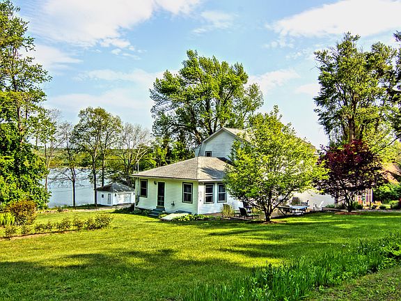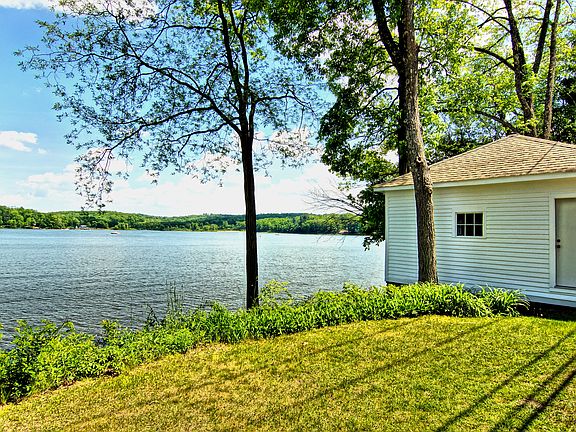 Located on the west shore of Connecticut's largest natural lake with an enviable 260' of water frontage and stunning year-round lake views, this lovingly cared for antique retains much of its original details plus updated mechanicals, electrical wiring and an addition that can be used as an in-law wing with its own separate entrance. At nearly 1.5 acres, the property boasts a 2-story lake structure with dock and lakeside picnic area, a 5-bedroom farmhouse with hardwood flooring, formal dining room, living room with wood burning fireplace, possible first floor Master Bedroom suite, both an enclosed and screened porch, and a large deck for sunning and entertaining. The expansive flat lawn is bordered by a stone wall and abutted on one side by Alain White Memorial conservation land with wooded privacy, and on the other by Bantam Lake. The house feels light, airy and spacious, and offers magnificent views of the lake and the countryside surrounding -- the perfect setting for casual lakeside living. Just 10 minutes to the historical Litchfield Green and 2 hours from NYC in the beautiful Litchfield Hills. Bantam Lake is 947 acres, home to two beaches, and is a designated "Heritage Lake" -- a lake considered to be an environmental asset of statewide importance. The lake offers year-round fishing, boating, and many other water activities, and is surrounded by 4,400 acres of White Memorial Conservation Land with extensive hiking trails.