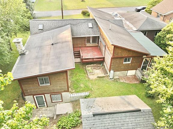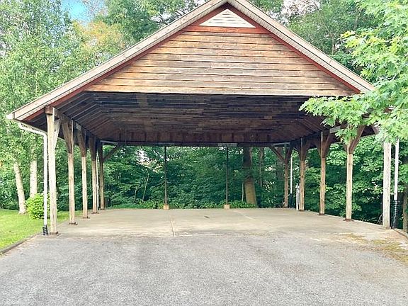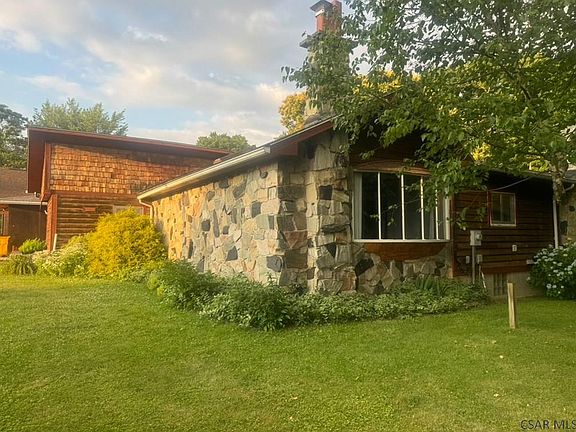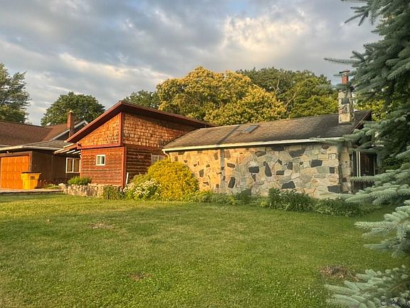 Truly a unique and beautiful home. This one-owner gem boasts 3-4 bedrooms & 1 1/2 baths. Constructed w/cedar, redwood trim, & Mica stone. Nestled on a spacious 0.52-acre lot, you'll find exquisite woodwork & meticulous craftsmanship inside, featuring stunning ship deck ash flooring, Mica limestone & cherry wood accents. Oak kitchen includes custom-built granite & cherry breakfast bar. Open floor plan flows seamlessly into the family/living room, which is highlighted by vaulted beamed ceilings & large bay window. Lower level features newer Kodiak wood/coal stove & custom-built wormy chestnut wet bar. Deck, paver/brick patio, firepit area, & large shed. Gigantic pavilion/carport w/220 electric can accommodate several cars. No-thru street.