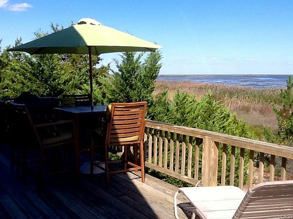Two story house on pilings (16 feet above ground level) and located at the highest point above sea level in Slaughter Beach. This location provides sweeping panoramic views of the Delaware Bay and all its natural areas. Not to mention the numerous sea birds and ocean life. AIRBNB: MOST SUCCESSFUL B&B in DE! Artistic, charming Slaughter Beach home. Your ideal retreat is move-in ready. Deck for sunsets and a deck for sunrise plus a tiki bar overlooking bay which is on the lower level... out of the sun and screened in for a bug free relaxing any time. There is private path to beach, a one minute walk. Experience why this home is so praised!