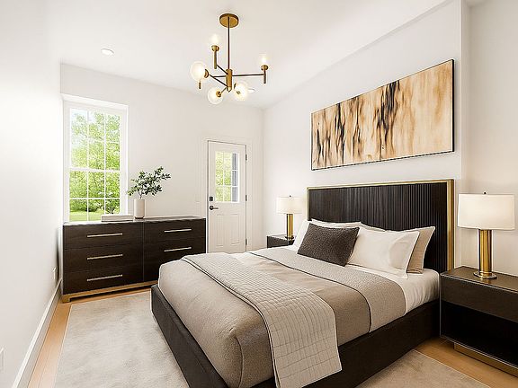 Each chef’s kitchen is thoughtfully designed with sleek gray cabinetry, gold hardware, high-end stainless-steel appliances, white marble countertops, and matching backsplashes. Oversized center islands double as breakfast bars, ideal for casual dining, entertaining, and meal preparation.