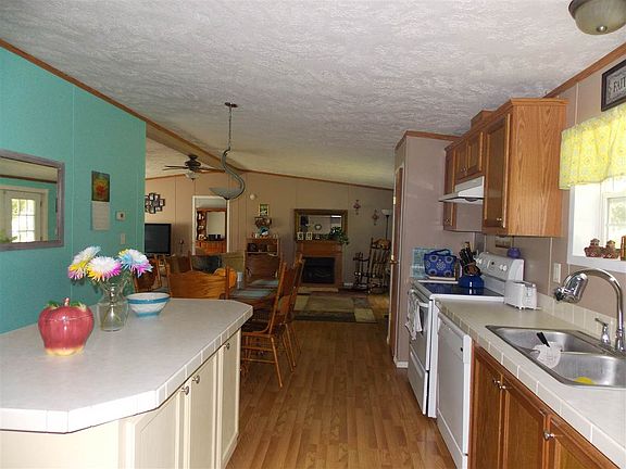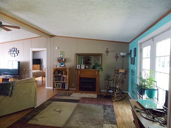 Nestled on partially wooded 1 1/2 acre tract, very nice and spacious 3 bedroom, 2 bath total electric manufactured home. Open concept living room, dining room and eat in fully equipped kitchen w/island. Split floor plan separates bedrooms. Large bedroom suite w/full bath w/garden tub and shower plus very large double entry walk in closet. Laundry area complete with washer & dryer. Small side deck. 10X13 yard barn. Gravel drive.