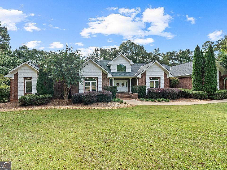 Discover this stunning custom-built home nestled on over 10-1/2 acres in Baldwin County, Georgia. A true masterpiece, this residence boasts numerous extras and sprawling outdoor space perfect for relaxing and entertaining. As you walk through the front doors, you're welcomed into a grand foyer featuring a comfortable sitting room and a powder room for guests - the perfect introduction to the home's inviting and functional layout. The gourmet kitchen features elegant tiled flooring, beautiful two-year-old granite countertops and backsplash, cherry custom cabinets, an eat-in island with a cooktop and raised bar, all stainless steel appliances, a double oven, and a walk-in pantry. Adjacent to the kitchen is a bright breakfast room and a formal dining room, ideal for family meals and entertaining guests. The hearth room with a brick wood-burning fireplace is perfect for intimate gatherings. Step outside from the hearth room onto a covered balcony overlooking the lush landscaped backyard and inviting in-ground swimming pool with in-ground hot tub, surrounded by cool decking for a perfect outdoor oasis. The home also offers gorgeous custom trim throughout and a spacious, thoughtful floor plan. The primary suite boasts trey ceilings, a custom tile shower, a three-person Jacuzzi, and his-and-hers closets. The residence features three new hot water heaters, all two years old, ensuring ample hot water for the entire home. Additional amenities include an attached three-car garage and a separate two-car detached garage, both with abundant attic storage. Downstairs, you'll find gorgeous tiled flooring, a bar overlooking a keeping area and second fireplace, a recreation/game room with trayed ceiling. There's also a large hobby or trophy room that could serve as an additional bedroom, one bedroom, a full bathroom, a climate-controlled walk-in gun safe room and an additional large flex room with a large walk-in closet. An additional half bath, conveniently accessible from the pool area, enhances outdoor convenience. This home also provides three climate-controlled storage rooms, offering an abundance of storage throughout. Security is a priority with a comprehensive security system, providing peace of mind. The meticulously landscaped and impeccably maintained exterior complements this exceptional property, combining comfort, luxury, and privacy in Baldwin County.