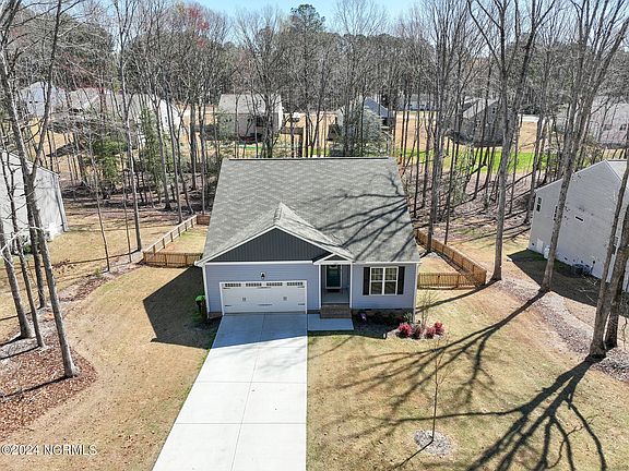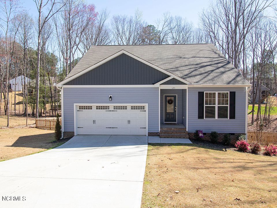 Step into this modern beauty, like-new built in 2022 and nestled within the prestigious Lake Royale Subdivision. Boasting 1652 square feet of meticulously designed space, this home offers 3 bedrooms, 2 bathrooms, and an open concept layout that's perfect for both everyday living and entertaining. The Ryder plan showcases a sprawling 1-story floorplan featuring a spacious foyer, quartz countertops, stainless steel appliances, a gas range, gas logs, all of which contribute to the contemporary elegance of the home. 2'' faux blinds and SMART home features add convenience and style to the living experience. The spacious owner's suite is a true sanctuary, featuring tray ceilings and a luxurious bathroom with modern finishes and a huge walk-in closet, providing plenty of space for storage and organization. Sitting on a generous .46-acre lot, this property offers a private fenced-in backyard, providing a serene retreat for outdoor relaxation and enjoyment. A spacious walk-in crawl space offers additional storage options, while a covered and screened back porch extends your living space outdoors, ideal for enjoying the beautiful surroundings in comfort. Residents of the Lake Royale Subdivision enjoy an array of amenities, including access to The River Golf Club at Lake Royale, sandy beaches, clubhouse, shuffleboard, putt-putt, and pickleball. With so much to offer, there's something for everyone to enjoy right at your doorstep. Don't miss out on the opportunity to experience luxury living in the Lake Royale Subdivision. Schedule a showing today and discover the beauty, comfort, and convenience that this modern home has to offer.