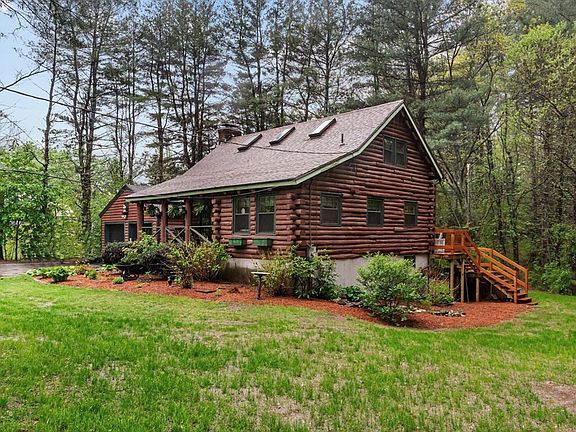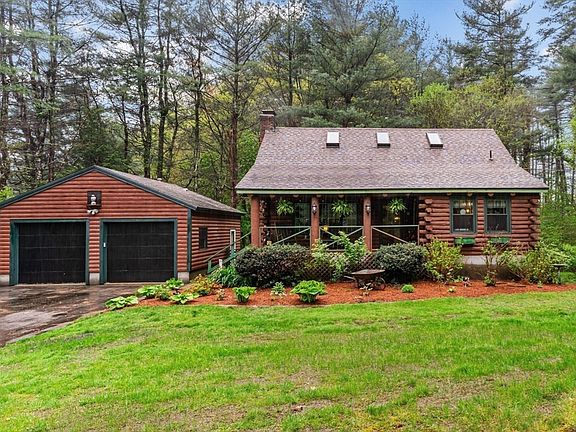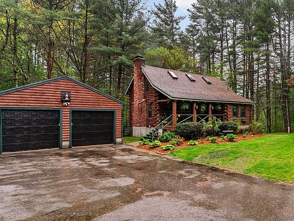 Tucked away on a private, beautifully landscaped lot, this breathtaking log cabin offers the perfect blend of rustic charm and modern comfort. Surrounded by lush gardens and vibrant flowering plants, this serene retreat invites you to relax and enjoy nature. Inside, the spacious living room features a cozy pellet stove—perfect for warming up on chilly days. The home includes generously sized bedrooms and two updated bathrooms, with a recently added lower-level bedroom and bath providing extra flexibility for guests or multi-generational living. The updated kitchen, boasts a large center island ideal for cooking and gathering. Enjoy the outdoors from the new deck, or take advantage of the walk-out basement for additional living or storage space. A detached, heated two-car garage, a brand-new septic system, and a brand-new heating system add further value and convenience. This charming log cabin is truly move-in ready—your peaceful escape awaits.