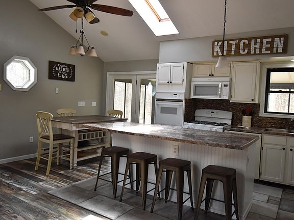 4 ACRES! SECLUDED/PRIVATE! LOCATION IS THE BEST! How about passing by Promise Land State Park on your way home every day! Long drive leads to this updated home that sits way back from the road! 3 plus bedrooms that includes your oversized master BR with full-huge custom tile bath and walk in closet! 2 1/2 baths, Nice Open Floor includes-Living room with cathedral ceilings and stone faced FP with gas stove, kitchen/dining room with large island. Family room downstairs with pellet stove, office area or 4th bedroom. Screened in back porch/3 season! 2 car garage, shed and plenty of room for storage! Low taxes and Low Dues for road maintenance...