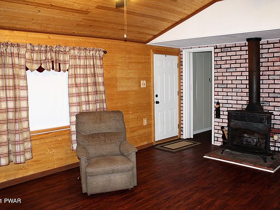 Sit on your covered front porch and take in the views...situated on 3.71 acres and overlooking the East Branch of the Wallenpaupack River...this cute as a button ranch features living room with propane fireplace and wood cathedral ceiling, open kitchen with dining area, 2 bedrooms, 1 bathroom with tub,...screened porch, large yard, 12'x20' carport, 2 storage sheds, 10'x20' dog kennel...Conveniently located near Lake Wallenpaupack, I-84 and shopping.
