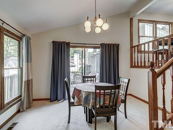 Move in ready multi level detached home in prime Cary location. Spacious family room features vaulted ceiling & masonry wood burning fireplace. Spearate dining area. Eat-in kitchen. Large master suite has 2 closets. 2 nice sized bedrooms w/ pass thru full bath on the lower level. Oversized deck leads to outside storage. Nice backyard with wooded buffer.