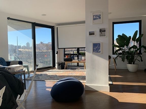 **2 BED 2 BATH WITH LARGE CORNER BALCONY - Williamsburg** 5TH FLOOR CORNER UNIT 1,075 SF LUXURY DOORMAN BUILDING KEY LOCATION SKYLINE VIEW LOWER MANHATTAN WASHER/DRYER 4 BLOCKS FROM MARCY JMZ AND FROM LORIMER L/G STATIONS SOUTH-FACING EXPOSURE INDOOR PARKING AMENITIES INCLUDED WITH RENT FITNESS CENTER/WORK SPACE/MEDIA ROOM/YOGA STUDIO COURTYARD/ROOF DECK/CONFERENCE ROOM PET FRIENDLY The Building Amenities are designed to exceed the highest expectations of the urban modernist, including a state-of-the-art fitness center with a surround music system and high end equipment, Business lounge with elevated seating, resident lounges, landscaped and furnished roof deck with stunning Manhattan views, stunning landscape courtyard, gaming lounge with entertaining games, laundry room,bike room, Parking and more. South Williamsburg is a neighborhood full of cultural influence mixed with new trendy restaurants, bars, cafes, parks, community gardens, organic stores, live music , citibikes as well as super fun fast food right at your fingertips. located in the center of it all commuting is super easy with all trains and public transportation around it. Domino Park just a short distance away. Contact us today to schedule your private showing ASAP