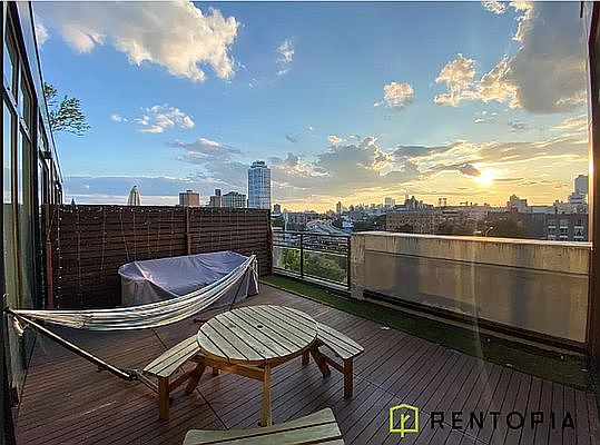 Video Tour Available / No Broker Fee Private Terrace with Manhattan Skyline View A beautiful 2 bedroom 2 bath in a new luxury building. Great space with modern design, brand new appliances including a dishwasher, hardwood floors, and central a/c. Fully tiled bath with modern finishes. Private terrace with lots of natural light. Short walk to McCarren Park and right by G/L/M/Z trains. Surrounded by bars, coffee shops and restaurants. Building features: -Gym -Laundry -Shared Roof access -Elevator -Bike storage -Parking Garage -Doorman -Package Room -Community Recreational Facility -Media Room Guarantors accepted Pets welcome I can show you all available units in the building
