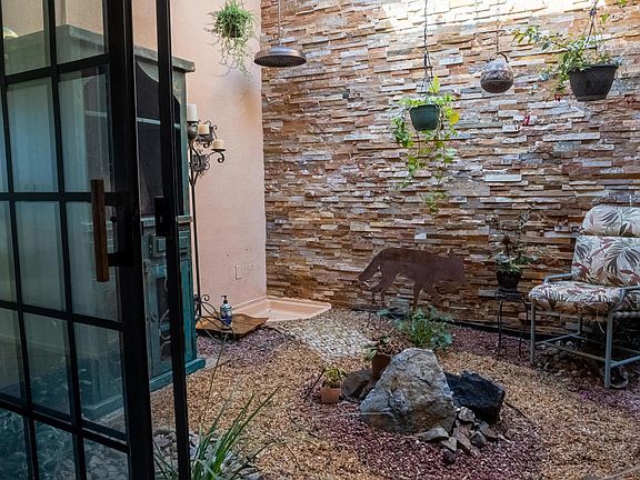 Welcome to 125 Bouquet Canyon in The Lakes Country Club. This Durango Condo with 2 bedrooms, 2 baths and 1,651sq of living space comes with a private courtyard entrance and spectacular South facing double fairway golf course, mountain, and lake views! Living room with vaulted ceilings and a cozy fireplace. Atrium with a rear stacked stone wall and an outdoor shower. Kitchen with stainless steel appliances and access to the patio with those unbelievable views. The second bedroom/den opens up onto the atrium for extra light and air. The primary oversized bedroom with a window that opens to your private enclosed courtyard with water features. Primary bath, with double sinks and walk in shower. Both bathrooms have new tile flooring. Attached two car garage with its own air conditioning and storage. The Lakes Country Club is a premier golf and residential community located in the heart of Palm Desert, California. This private, gated community offers residents and members an exclusive lifestyle surrounded by natural beauty, world-class amenities. Sold partially furnished. Seller paid the new clubhouse assessment upfront so HOA fee for this unit is lower.