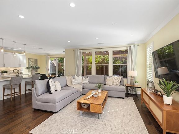 Located in the prestigious Eastwood Village in the heart of Irvine, this turnkey Helena Plan 3 corner lot townhome was built by Irvine Pacific Homes in 2016. This beautiful home features 3 spacious upstairs bedrooms with 2.5 bathrooms along with 1,708sf of living space and a direct-access 2-car garage. This Semi-Detached, model perfect, light and bright home boasts an open floor plan and features a spacious downstairs great room with high ceilings, contemporary styling and lots of room for entertaining. Chef’s kitchen features upgraded KitchenAid stainless steel appliances, gas cook top & oven, upgraded white wood cabinetry, quartz counter tops, a large center island, natural stone backsplash, and pendant lights. Other features include vaulted ceiling in the primary bedroom with a ceiling fan, custom window coverings, custom paint downstairs, plantation shutters, and hardwood flooring downstairs, plush carpet with premium padding upstairs, crown moldings, Lutron WiFi enabled lights, WiFi enabled thermostat, and more. Through a glass door off the dining area is the lush, private, wrap-around backyard - a perfect place to relax, entertain or dine outside. The large Primary Suite has lots of light also includes a spacious walk-in closet and the upstairs also features 2 additional rooms along with a study niche. The home is zoned to top-rated, award-winning Irvine schools including Eastwood Elementary, Sierra Vista Middle School, and Northwood High School. The community features four magnificent parks, several built-in BBQs, countless children’s playgrounds, tennis courts, volleyball court, baseball diamond, soccer field, basketball courts, walking trails, two luxury style pools, and a clubhouse. Located within steps of Eucalyptus Park and Trailhead Park and close to Jeffery Open Space Trail, Woodbury Town Center, the Irvine Spectrum shopping center, and the Irvine Great Park. Low property tax rate of approx. 1.2% with Mello Roos of approx. $2,700 per year.