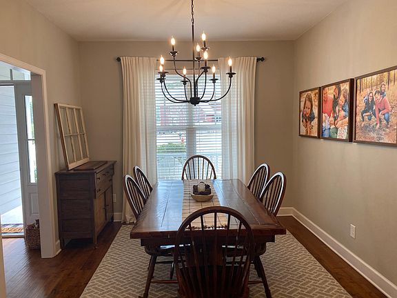 This 5 bedroom, 3 bathroom house with over 3000 sqft is a great place to call home. When you walk in the front door, the dining room is to the left of the entryway, and connects to the open kitchen, featuring white cabinets and dark charcoal/black leathered granite countertops. Stainless steel dishwasher, microwave, gas stove, and refrigerator included. A serving/breakfast bar leads into the living room with a beautiful corner fireplace. Out the back patio double doors, you'll find a covered patio with fan and a large, fenced-in backyard. Back inside, down the hall, you'll find the main bedroom (with exterior door to back patio) and bathroom (with double vanity and shiplap wall), as well as two additional bedrooms, 1 bathroom, the laundry room and a coat closet. At the top of the stairs, you'll find a large bonus room that is a great second living space - and has enough room to serve as a playroom as well. This room also has a little bar area, with a sink, space for a mini fridge, and several cabinets. Turn left from the stairs and go up 2 more steps to find another full bathroom, plus 2 more bedrooms, both with lots of closet space. You'll also find a convenient storage area in the walk-out attic right off the hall in this upstairs area. Tile in bathrooms and laundry room, wood floors in the downstairs entry, kitchen, living room, hallway, and main bedroom. Carpet in two bedrooms downstairs and all of the rooms (excluding the bathroom) upstairs. Sprinkler system will be installed prior to move in, and lawncare will be included with rent (including fertilizing, mowing, etc). 1 year lease, but open to a longer lease if tenant would like. No smoking or vaping allowed inside or within 20 feet of home. Owner will pay for lawncare (mowing, fertilizing, aerating, weed control, etc). Tenant responsible for all utilities (water, electric, gas, wifi, etc). Tenant required to have renter's insurance. Tenant required to change air filters every 2 months. 2 pets up to 50lbs allowed with owner approval. One-time $125 non-refundable fee charged per pet. All occupants over the age of 18 must submit application. Incomplete applications won't be considered. Credit score of 600+ required. Monthly income must be 3x rent.