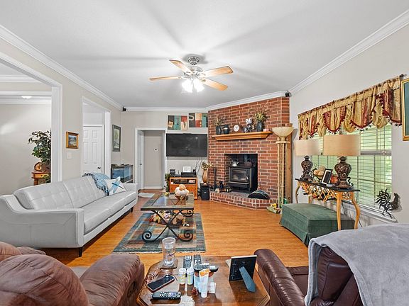 Introducing a Perfect Blend of Comfort and Serenity - A 4-Bedroom, 3-Bathroom Haven on 5.98 Acres. Nestled on the outskirts of town, this stunning property offers the best of both worlds: a peaceful retreat on acres of sprawling land, yet just a short drive away from all the conveniences of town life. The open floor plan seamlessly connects the living room, dining area, and kitchen, making it perfect for family gatherings and entertaining. The privacy gate and back deck were installed in 2020 and the roof/AC replaced in 2021. All new appliances. Hot tub/pool/Bose surround sound convey with property.