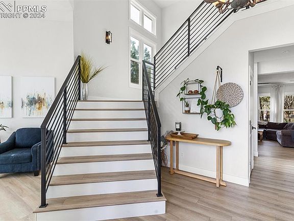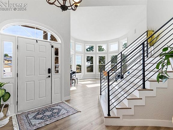 Nestled on a quiet cul-de-sac, this stunning property boasts a light, bright, and open floor plan that will exceed your expectations. As you step inside, you'll be greeted by the striking circular formal living room, leading seamlessly into the formal dining room and great room concept family room, complete with a cozy gas fireplace, perfect for relaxing evenings under Cheyenne Mountain. The heart of the home lies in the beautifully updated kitchen, featuring a large island with quartz countertops, a prep sink, a breakfast nook, and a walk-out to the composite deck overlooking the private treed backyard. Upstairs, retreat to the luxurious primary suite with a fireplace and a recently updated spa-like 5-piece bath with a large walk-in closet. Three additional bedrooms await on the upper level, including a guest suite with a private bath, two bedrooms sharing a jack-n-jill bath, and a bonus room - perfect for a playroom, study area, or extra bedroom. The lower level offers ample space for a live-in nanny, hosting out-of-town guests, a 2nd kitchen with a 42" Subzero refrigerator, Asko dishwasher, smart pantry cabinet adjacent to lower level family room with walk-out french doors to the backyard. Plus, the fifth bedroom and full bath complete the package as this 2nd primary bedroom bathroom is even more spa-like with a double-head steam shower and dual vanities with anti-steam mirrors. This exceptional home also has dual furnaces and central air units for year-round comfort, an oversized garage, and a large parking area. Updates throughout the house ensure modern convenience, while the completely updated lower-level mother-in-law suite with a full-size chef's kitchen offers endless possibilities. New LVP floors throughout the entire home, new windows, new water heaters, and new whole-house humidifier welcome home to this masterpiece in District 12.