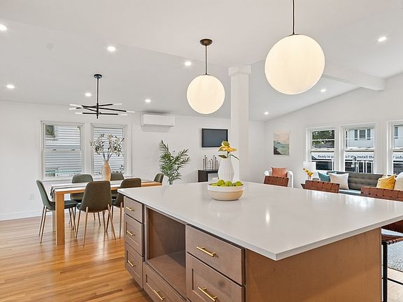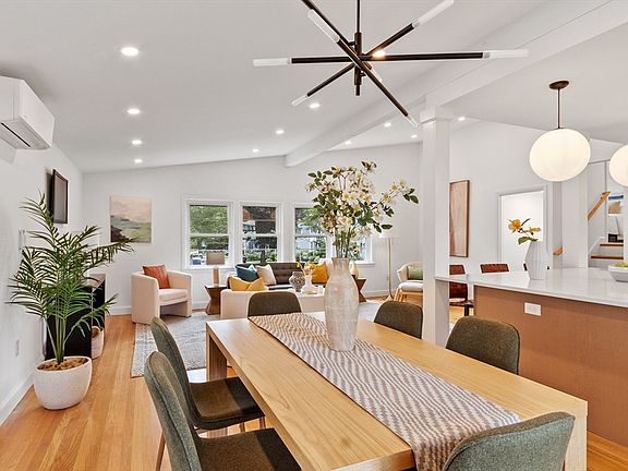 Beautifully renovated Mid-Century style home in the Winn-Brook neighborhood. Live in a gorgeous house with character that also is spacious and bright. In a very quiet interior, you'll be in your zen space. 3bed/3bath and 2 car garage! Newly renovated kitchen and bathrooms, House is flooded with natural sunlight, main living area is a big open floor plan, good sized bedrooms, master bath with double sink. Great layout, with a big open basement that allows for expanding use of the space. All 2024 electrical, plumbing, heating and cooling, patio, garage doors, all new lights, doors, hardware and fixtures, Bosch appliances, Easy access to Rte 2, Alewife, public transportation. Don't miss this one!! Pictures are of previously staged house, prior to current occupants.