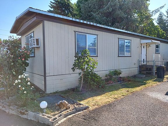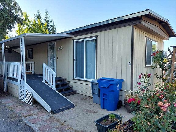 Affordable home in a 55+ community! Many fresh updates including new low maintenance luxury vinyl plank flooring and carpet, paint, and stainless steel refrigerator. Ramp at the front door for easy access. Enclosed carport andstorage shed. Space rent is $775 and includes water and access to clubhouse and. Clubhouse has community kitchen, pool table, and central fireplace with view of the pond. RV storage on site available. Easy access to I5, Restaurants, and the mall.Schedule your private tour today!