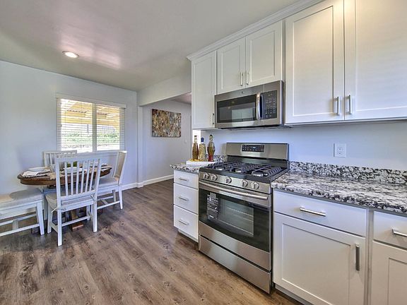 You will be delighted with the cheerful exterior and calming interior palate of this adorable three bedroom, two bath home. Located in peaceful cul-de-sac, this property has been redone and is ready for you to move right in. Brand new kitchen and luxurious baths featuring dramatic granite counters and stainless appliances, new floors, plush carpet in bedrooms, double-paned windows, custom blinds and recessed lighting throughout. Desirable open kitchen/dining/den area has cozy fireplace to warm your evenings, a low maintenance fenced yard with spacious patio and barbeque area to enjoy outdoor living and an over-sized deluxe two car garage with freshly painted vinyl flooring in which to store your autos and toys. Great location near beaches, ball park and freeway.