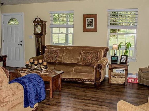 Don't miss this Custom built 3 bedroom 3.5 bath Cape Cod situated on 2.7 acres with breathtaking views. Features updated kitchen with stainless appliances, custom flooring, large pantry, breakfast bar open to dining room, slider to 15x36 deck with bar, spacious living room with custom flooring, convenient half bath, master suite with double sinks, full bath, his and her closets. Two large 2nd floor bedrooms and full bath. The recently finished basement has a large game room with custom stone bar and stone hearth with wood stove, full ceramic tile bath, 11x11 play room or 4th bedroom, finished laundry room with storage. Custom landscaping, big storage shed, play ground, large private lot with room to expand. Just move right in!