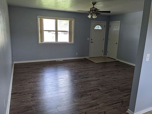 This home in Carterville Missouri is close to 249 and lots of shopping. There is a fenced backyard. It is a three bedroom, one and a half bathroom. The full bathroom has a tub shower combination and the half bathroom is in the laundry off the kitchen there is a stool and a sink in there. The garage has a steel entry door and the garage also has remote access for the garage door. The paint and the flooring are brand new, the kitchen cabinets are oak with formica countertops. There is a stove and a microwave in the kitchen and an area for the refrigerator . The kitchen and the bathroom or tile. There is also a whole house attic fan in the hallway. This is also in the Webb City School district.