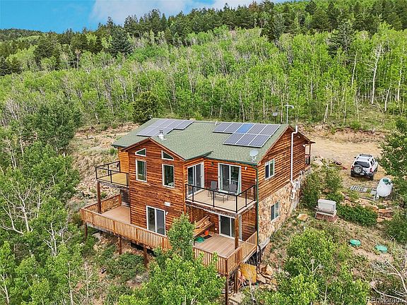 Live Off Grid In A Stunning South Facing Location High Above Central City In This Beautifully Remodeled Home With Sweeping Views From The City To Mt. Blue Sky. Bright & Open Living Room With Access To Two Spacious Decks With Magnificent Views. New Carpet & Paint. Upgraded Solar System With New Ground Mount Panels And New Batteries With Smart Access & Monitoring. Two 500 Gallon Propane Tanks. Back-Up Generator. Water Filtration System. High Speed Internet. Radon System. Hot Water Baseboard Heating. Spacious Lower Level Has Bathroom Rough-In With High Ceilings & Can Be A Great Utility Space/Gym, Or Finished With 1-2 More Bedrooms. Perfect As A Primary Home Or Mountain Escape. Just Minutes From Central City & Black Hawk Casinos, Gaming, Fine Dining, Museum & Opera. Close To Horseback Riding Trails, ATV Trails, Hiking, Biking, Rafting, Rock Climbing & National Forest. Easy Access To I-70 Via Central City Parkway To Commute To Denver Or Head West To World Class Skiing. Garage/Quonset With Wood Stove. Must See Stunning Home In Prime Location. Super Low Gilpin County RE-1 Taxes. No HOA. Bobcat & Attachments Included. Move-In Ready.