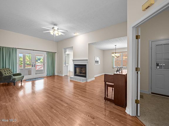 Welcome home to 125 Canebrake Drive in beautiful River Bend. This 3 bedroom, 2 bath home, situated on a cul-de-sac lot on Lakemere. Stepping into this home, you are met with gorgeous lake views that melt your troubles away. The spacious living room with gas fireplace and vaulted ceiling offers lots of space for family get togethers or entertaining friends. Just off the living room is the kitchen with stainless appliances, plenty of cabinets for storage and countertops for cooking up family meals. Enjoy breakfast in the eat-in kitchen or serve up family dinners in the dining room. The primary suite with vaulted ceilings and water views is a getaway retreat after a long day's work. The master bath, with a newer walk-in shower, flooring, dual vanities, and plumbing fixtures has a linen closet and shelf storage providing you with plenty of room to store linens and toiletries. The other two bedrooms are generous in size. The guest bathroom has a single vanity and shower/tub combo. Just off the living room is an enclosed porch (not included in the heated square footage) with a sliding door to the kitchen. The deck is perfect for container gardens and just enjoying the lake views. This home has a whole house generator and leased water softener. Make this house your home today!