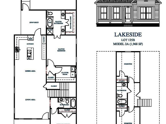 Charlotte Park Cottages at the Village at Tradition. This floor plan is LAKESIDE and features a main floor master suite, large living and dining area. There is a room at the front of the plan that can be a 4th bedroom, or office/study. The second story features two additional bedrooms and full bath. Nice front porch and side porch and attached 2 car garage.