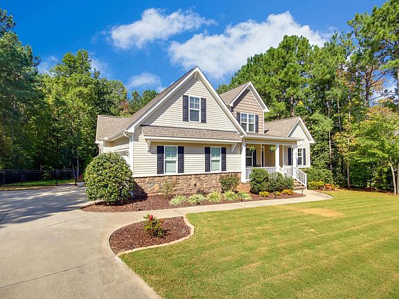 Imagine a home that welcomes you with warm hardwood floors, natural light, and tons of custom functional and beautiful details. It exists here! From the large entry foyer to the custom wainscoting in the dining room, you will love this house the second you step into it. The kitchen offers a large walk in pantry, custom cabinetry, a butler's pantry, and under-cabinet lighting. All NEW carpet, all FRESH paint throughout make the living spaces move-in ready. The primary bedroom on the main level is large enough for all of your comforts, and includes custom shelving in the primary closet. The primary bathroom offers a large soaking tub and oversized walk-in shower. There is an additional bedroom with a full bathroom on the main floor, perfect for overnight guests. Upstairs, you will find a huge bonus room and 2 additional bedrooms. The walk in attic storage is so convenient! The customized drop zone is convenient to the garage and large laundry room with shelving. The fenced back yard includes a huge screened porch and custom stone patio. Gather friends and family around the fire pit and outdoor grill. Smart light switches, smart thermostats, and Ring doorbell included. Kitchen refrigerator, garage refrigerator, washer, and drier convey with acceptable offer. USDA eligible.