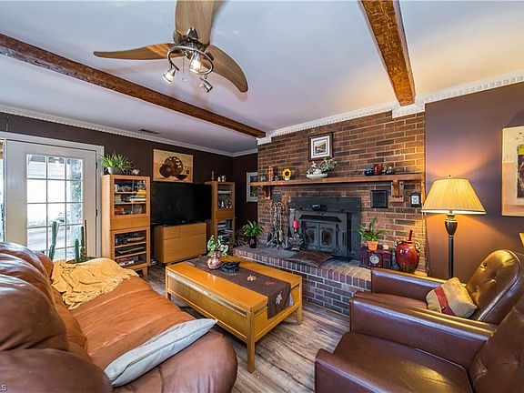 This home has SO much to offer! Large living room has exposed beams, crown molding and fireplace with woodstove insert. Master bedroom with large bath has double vanities and stylish tile bath as well as separate tiled walk in shower. Two full kitchens and bar area in the den provide tons of entertaining space. Fenced in backyard complete with storage building, huge deck with attached covered area. Come make this home your own!